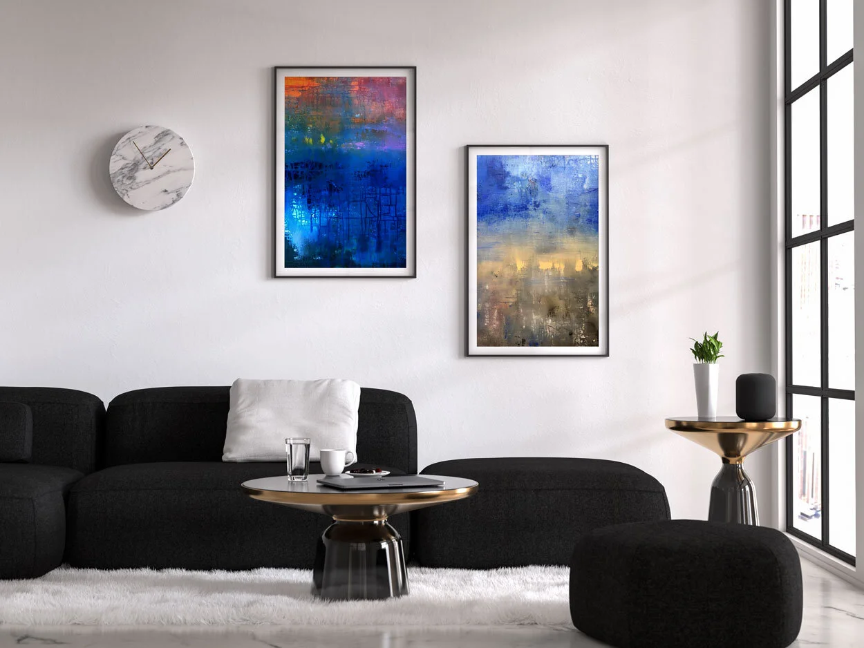 Hanging two pictures staggered? This is optimal with larger pieces. Try staggering them by hanging one lower than the other, so that top and bottom don’t match.