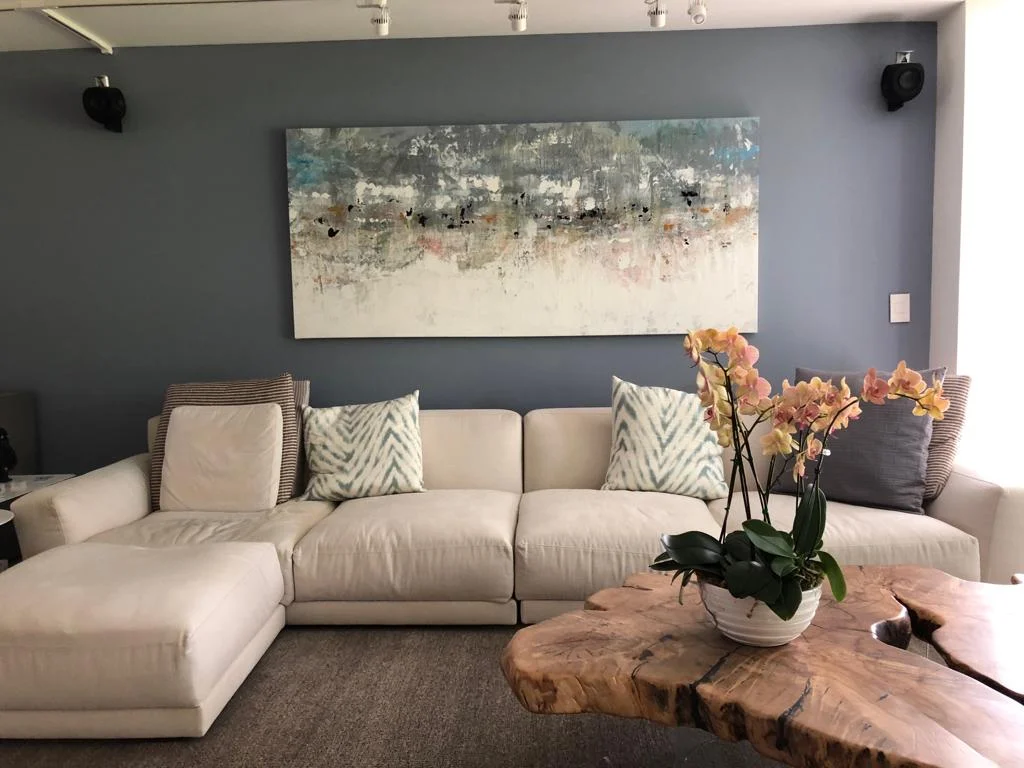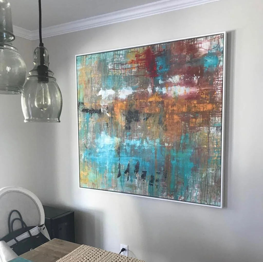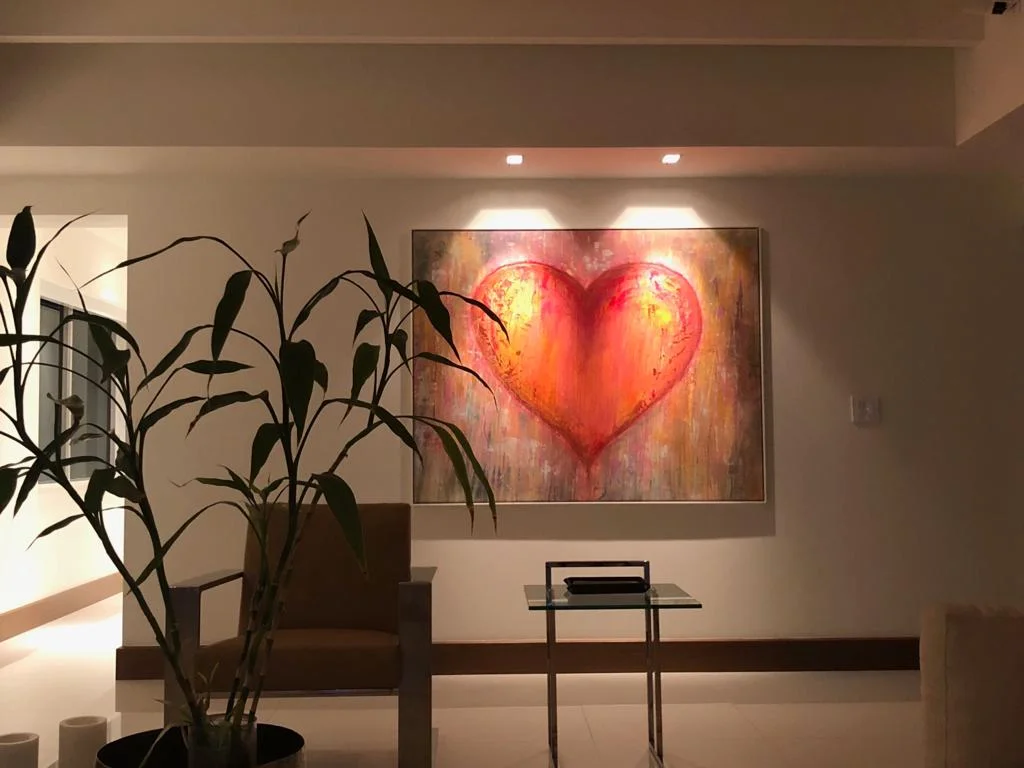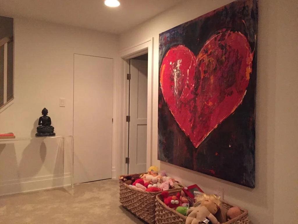 Abstract heart painting made by Cristina Dalcomune in a client’s living room.
